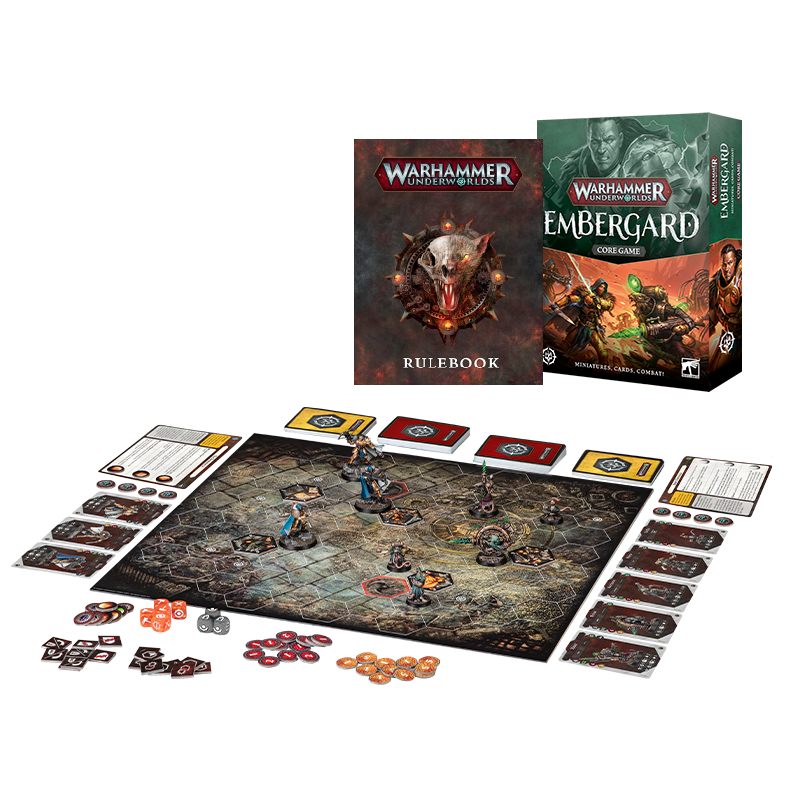 Brave the perilous labyrinth beneath the ruins of Embergard, battle rival warbands, and claim the lost treasures that lie buried in the crumbling tunnels! Embergard is the brand-new Warhammer Underworlds Core Game – a fast-paced board game of miniatures, combat, and cards.